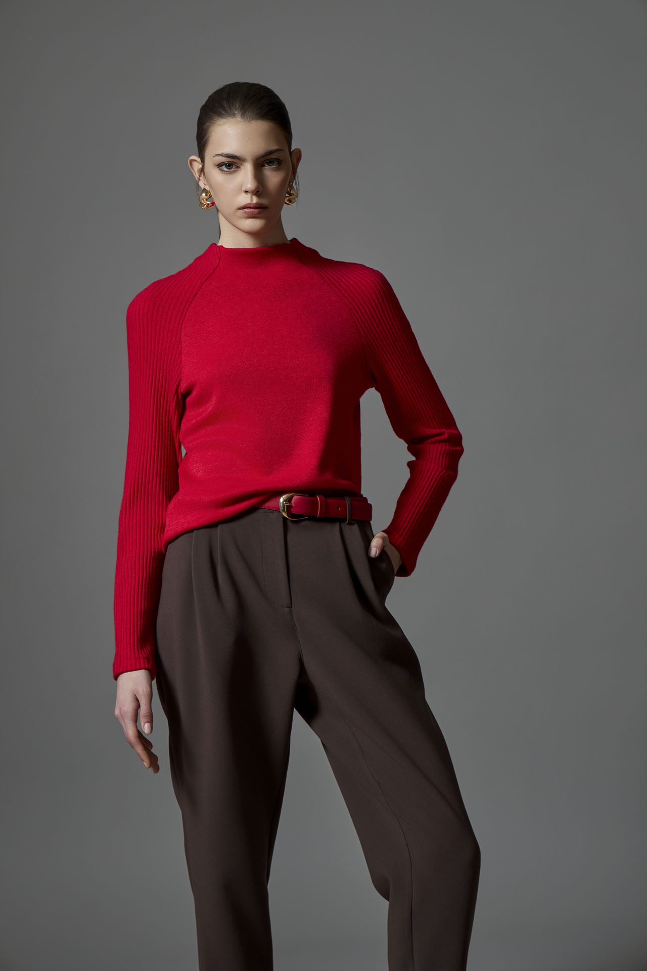 Timeless and refined, these tailored brown pants feature a classic straight-leg fit and a flattering high-rise cut. Front pleats add sophistication and elongate the silhouette, making them as chic as they are versatile. Designed to pair perfectly with the matching blazer, they create an effortlessly polished look from office hours to evening outings.