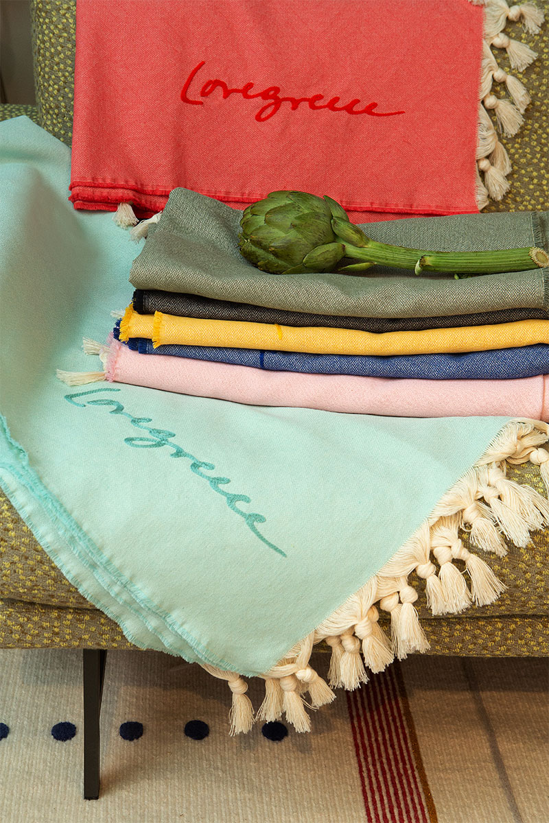 The Lovegreece Monochromatic Double Fouta throw brings together heritage craftsmanship and modern elegance. Woven with the traditional Greek Meander technique, it offers plush softness on one side and superior water absorption on the other. Lightweight, compact, and quick-drying, it’s the perfect companion for the beach, spa, or everyday use. Hand-finished with delicate cotton fringes and embroidered tone-on-tone with the Lovegreece logo, it reflects quality, sustainability, and timeless style. Made of 100% recycled cotton—crafted with love, to be used with pride.