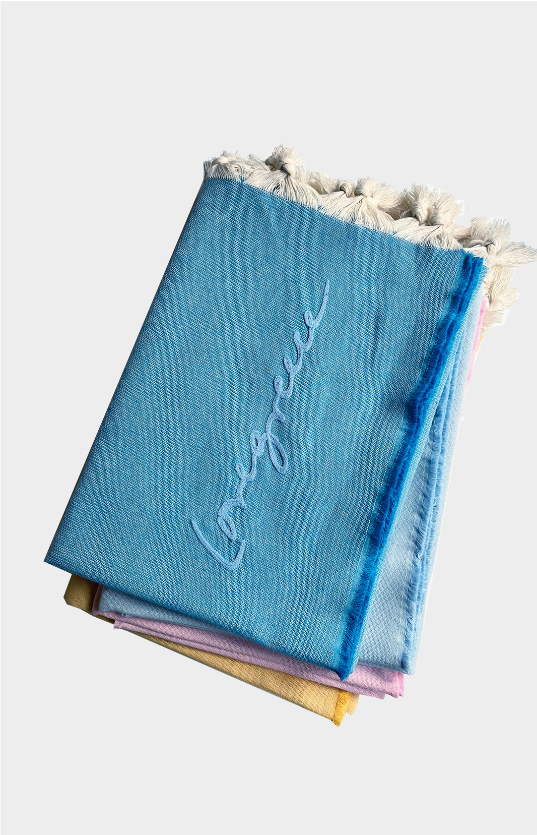 The Lovegreece Monochromatic Double Fouta Throw brings together heritage craftsmanship and modern elegance. Woven with the traditional Greek Meander technique, it offers plush softness on one side and superior water absorption on the other. Lightweight, compact, and quick-drying, it’s the perfect companion for the beach, spa, or everyday use. Hand-finished with delicate cotton fringes and embroidered tone-on-tone with the Lovegreece logo, it reflects quality, sustainability, and timeless style. Made of 100% recycled cotton—crafted with love, to be used with pride.
