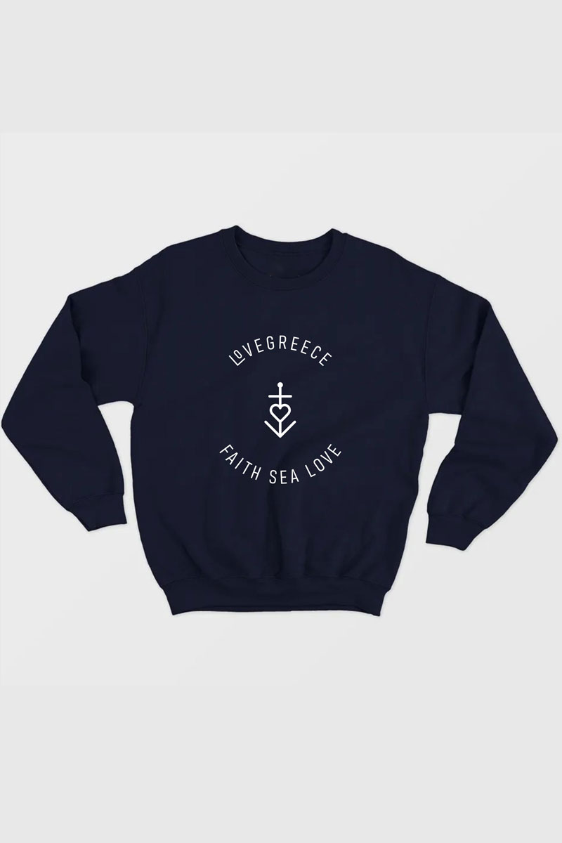 The Lovegreece Faith–Sea–Love Light Sweatshirt—an everyday essential designed for effortless comfort. Crafted from soft, lightweight loopback jersey, it offers a cozy warmth while remaining breathable, making it perfect for year-round wear, especially through spring, summer, and autumn. A true reflection of Greek craftsmanship, every Lovegreece piece embodies timeless quality and care.